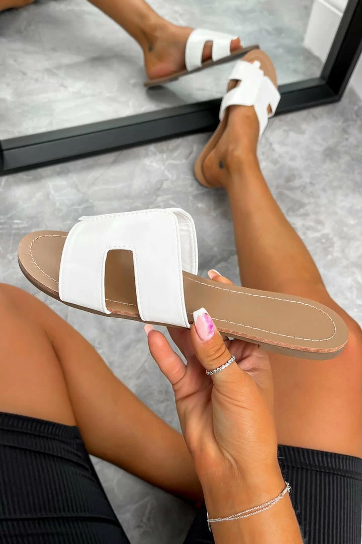 A definite Summer essential for this season, our Kait slip on sliders will be your go to slider. Featuring a loop cut out design and faux leather PU material, pair with some ripped black jeans to complete this look.Â