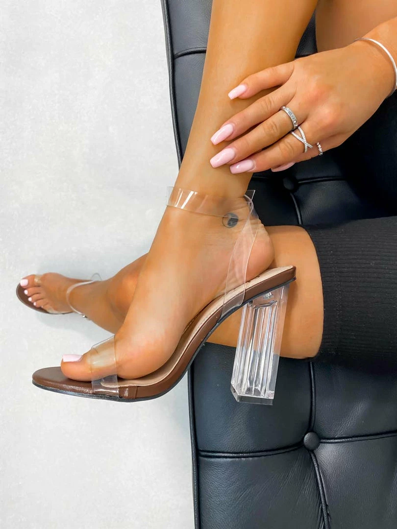 Step up your shoe game in our go to heels, perfect for your party outfits. Featuring a perspex strap with wrap around buckle fastening with a perspex block heel.