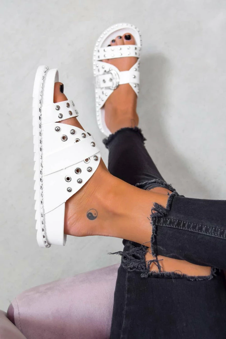 We’re loving these new baddies, our ‘Who Knew’ sandals feature a chunky cleated sole design, with thick front straps, silver studded detailing and a western buckle strap, they’ll be your go to sandal this year!