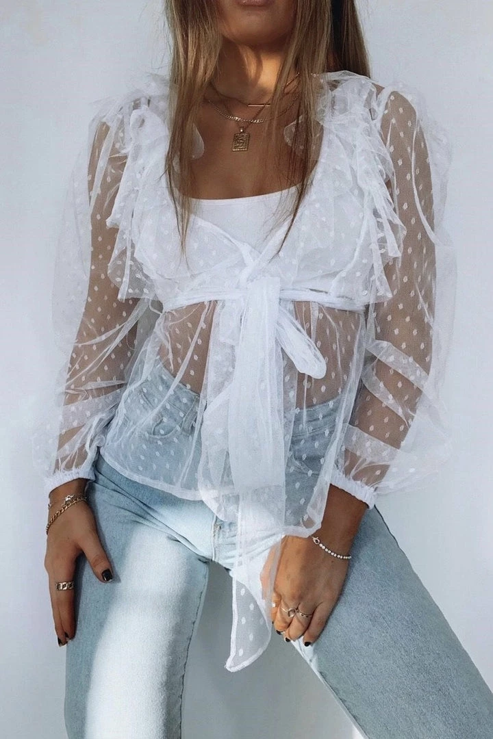 AJ Voyage Tops MARISSA Dotty Mesh Wrap Top – White