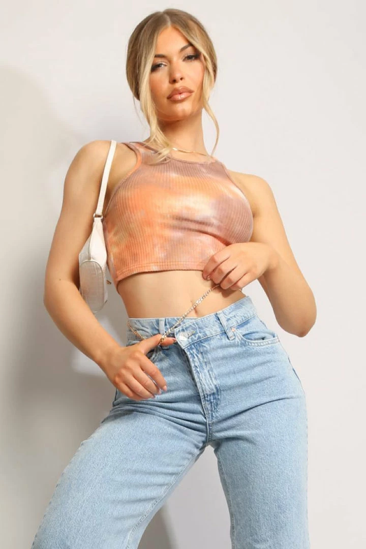 Tie dye topĀ featuring aĀ sleevelessĀ design, cropped fit and ribbed fabric.Ā Pair with some Mom jeansĀ to complete this look.