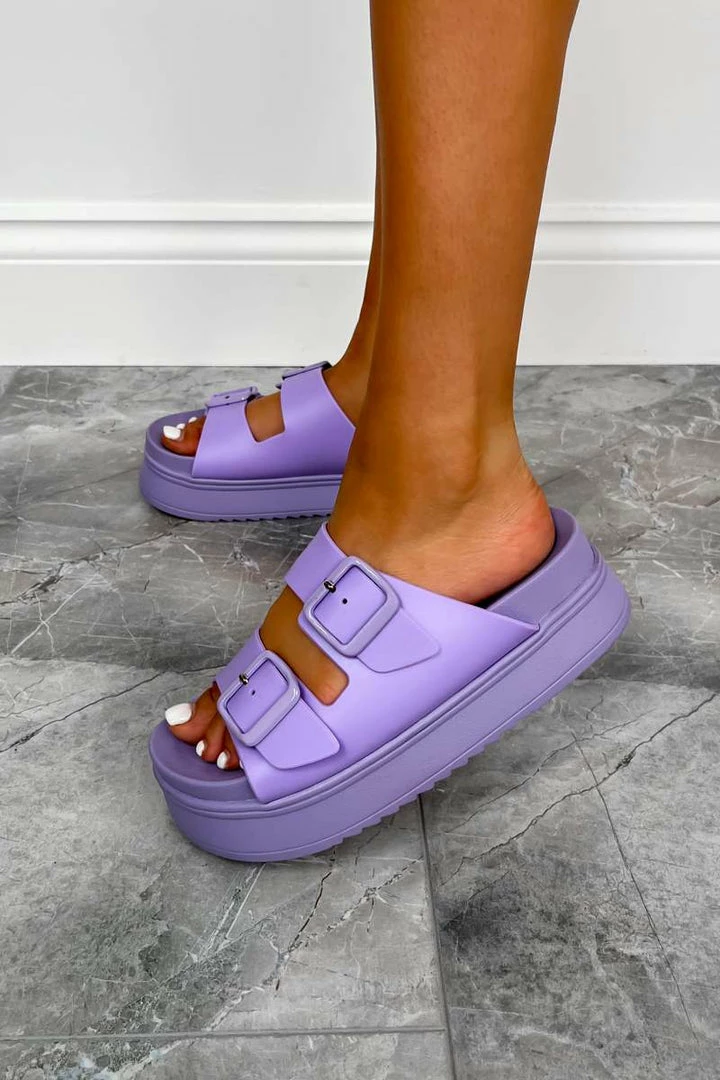 Our Desra sandals feature a super chunky platform sole, double front straps and buckle detail. These are the perfect slides to see you through the Summer!