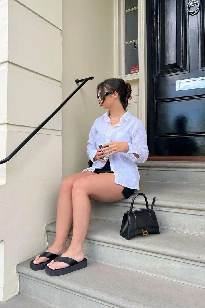 Our Jaymie sandals featuring a chunky flat-form sole and toe post design.