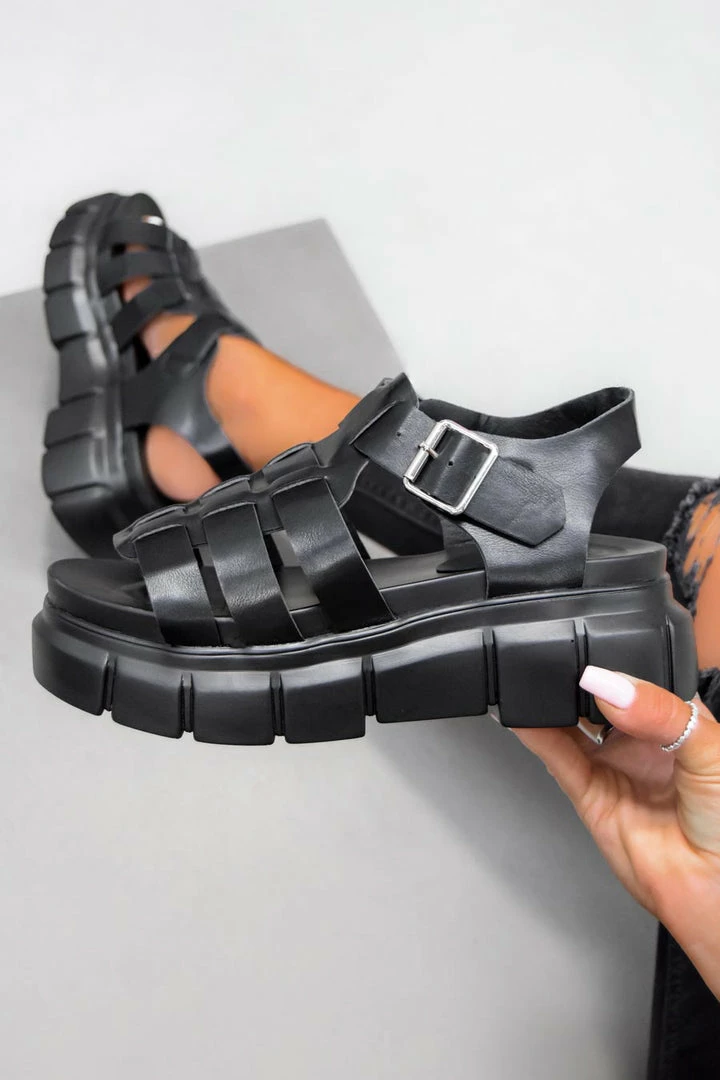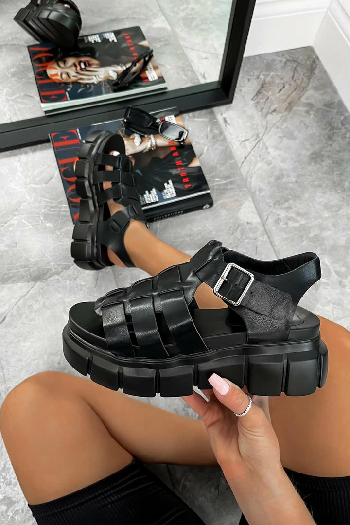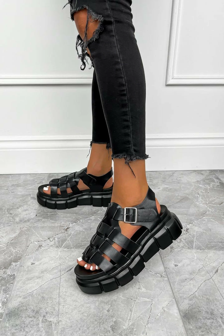 Our Lena sandals feature a chunky unique platform sole, a gladiator style front with an ankle buckle fastening