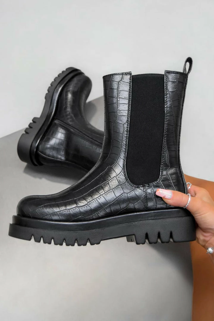 Level up your look this season in these latest arrivals, featuring a pull on design, chunky platform sole and elasticised side panels in a mid length fit.