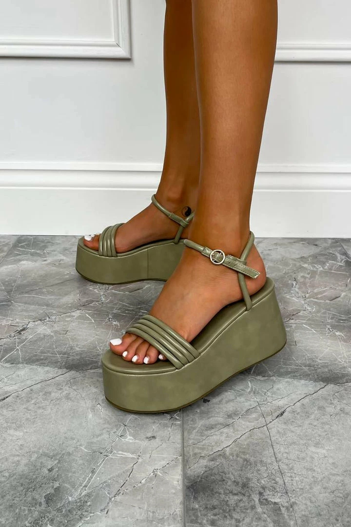 Our Macey sandals feature a chunky platform wedge sole, thick front and barely-there ankle strap with buckle fastening.