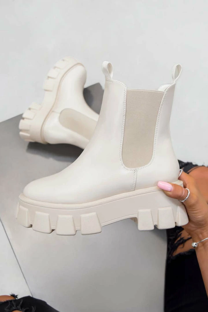 Our Rio boots feature a super chunky platform sole, slip on design with elasticated side panels with a matte PU finish.
