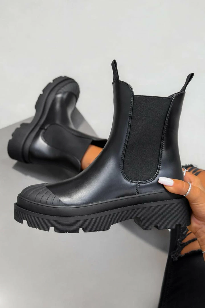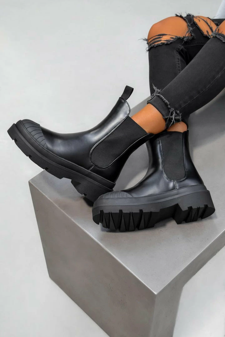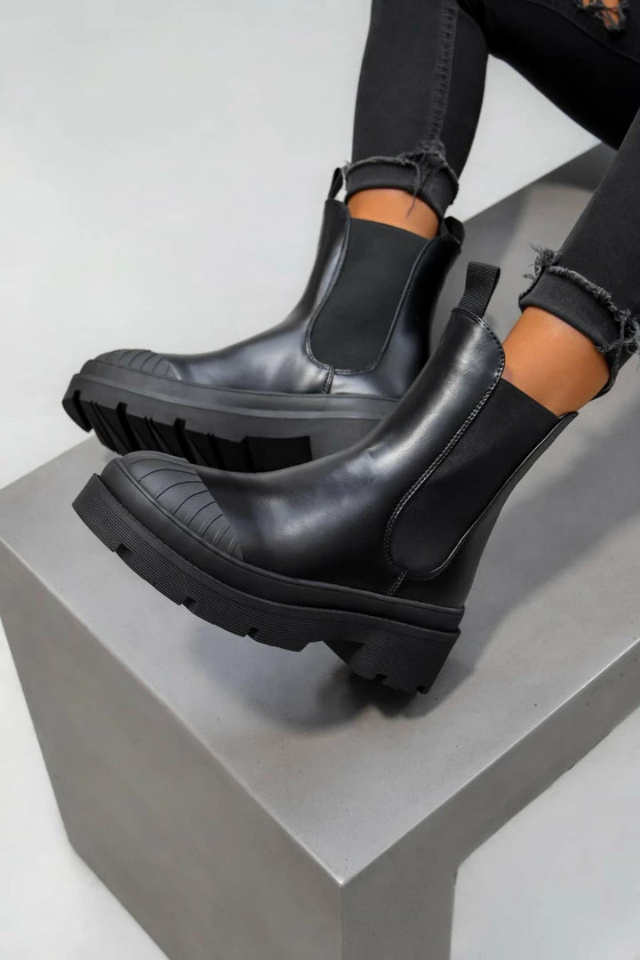 Our Vela boots feature a slip on design with elastic side panels, with a chunky sole & toe cap detail.