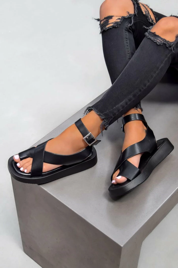 Your Summer is about to look a whole lot better! Add that extra edge to your look in our Adelina sandals. Featuring a chunky sole, gladiator toe post design and ankle buckle fastening.Â