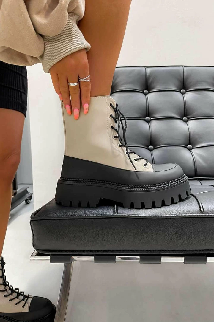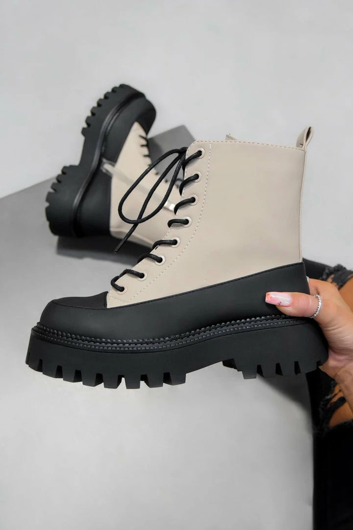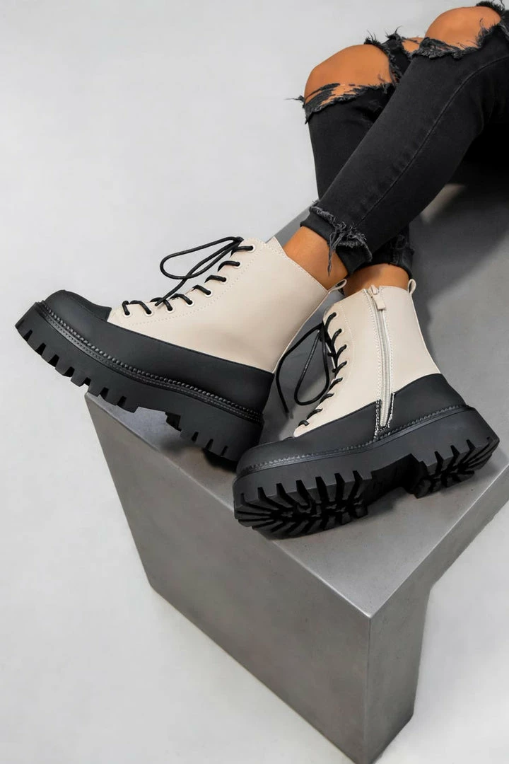 Our Level Up boots featuring a lace up front boot, colour block detail, and a chunky sole.