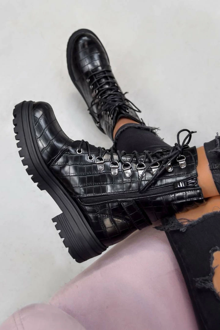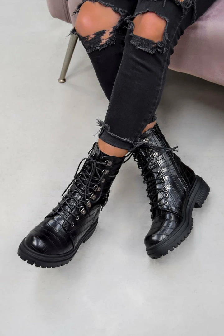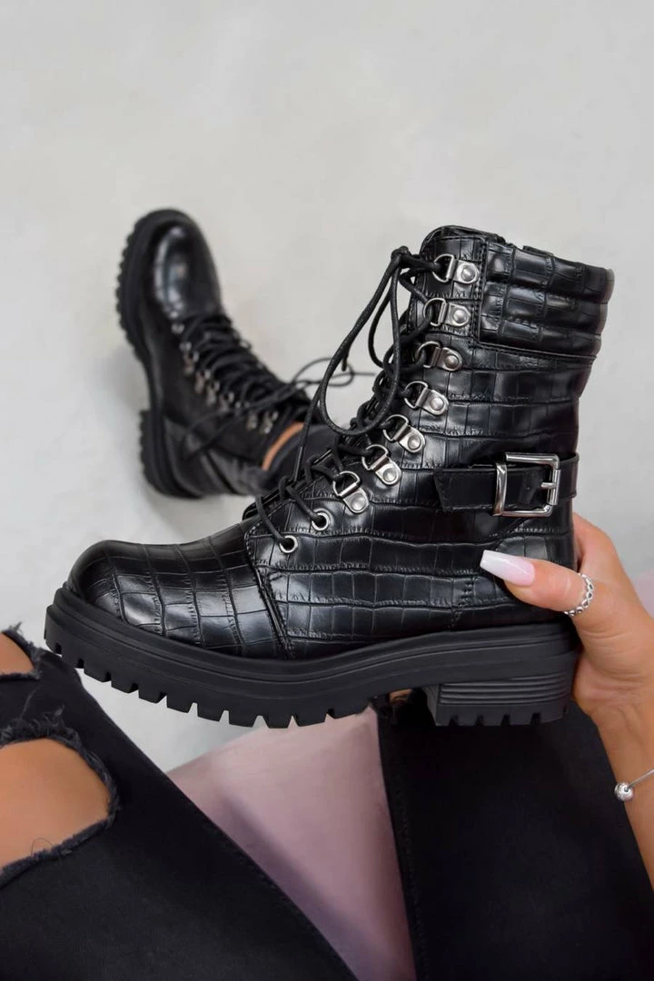 These are definitely one to get you ready for A/W! Featuring a lace up front, buckle strap chunky sole and croc PU finish, they’ll definitely add that extra edge to your look this season. Pair with some black ripped skinnies to complete this look.