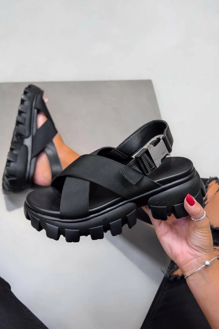 Get your Summer looks locked in with these chunky new arrivals, we can’t get enough of these baddies! Featuring a chunky sole, crossover front straps and buckle fastening. Pair with some black ripped jeans to complete this look.