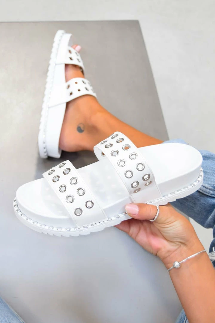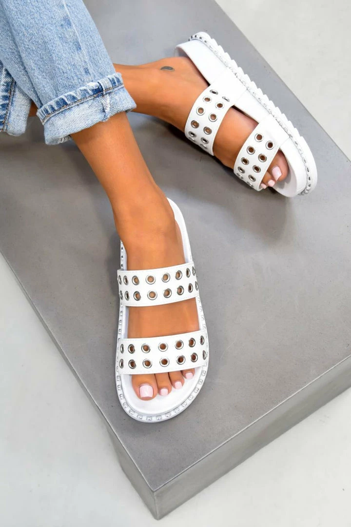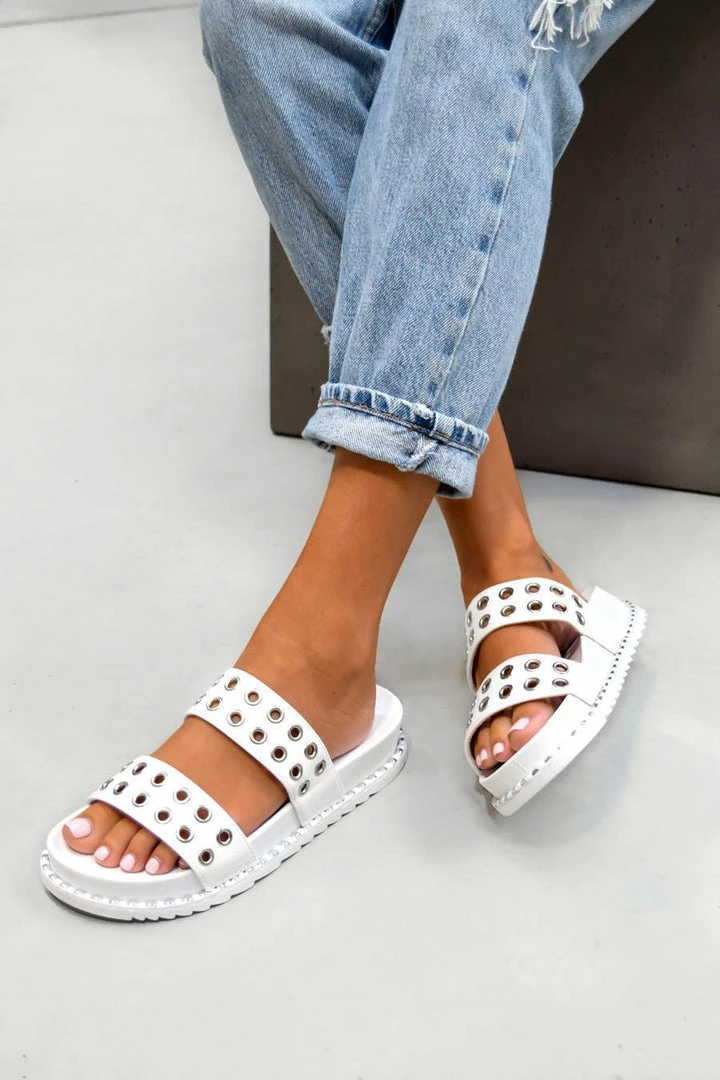Our ‘Tell Me’ sandals are a definite Spring/Summer essential, featuring a chunky cleated sole design, with thick front straps and silver eyelet detailing, they’ll be your go to sandal this year!