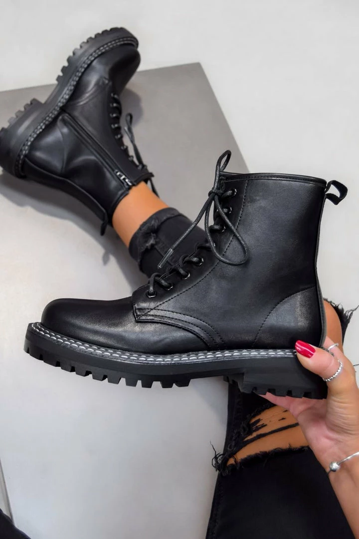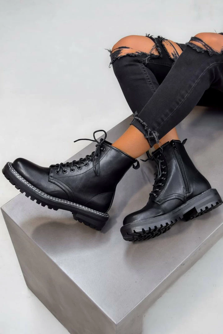 These new arrivals are straight up fire! Featuring a lace up design with contrast white switching and a cleated sole. Pair with some black ripped skinnies to complete this look, these are the perfect boots to see you through any season.