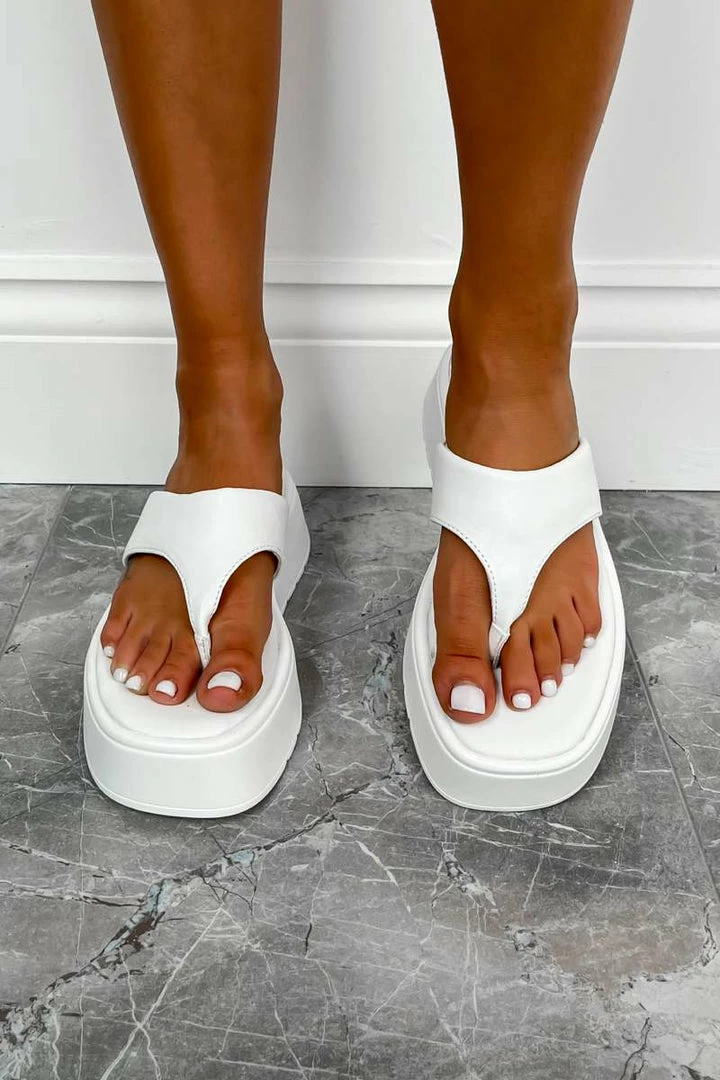 Our Kayo sandals feature a super chunky flat-form sole and toe post design.