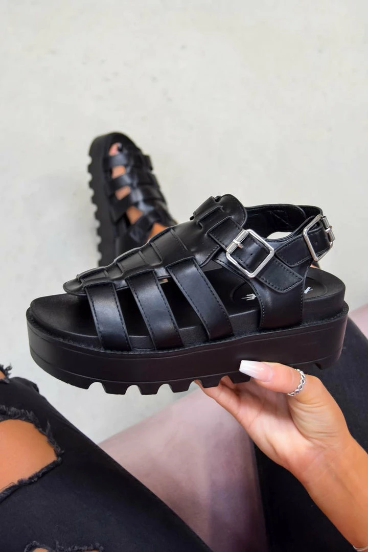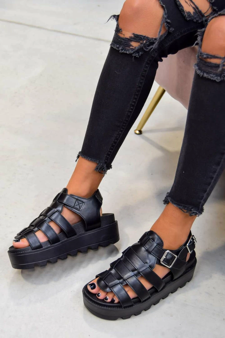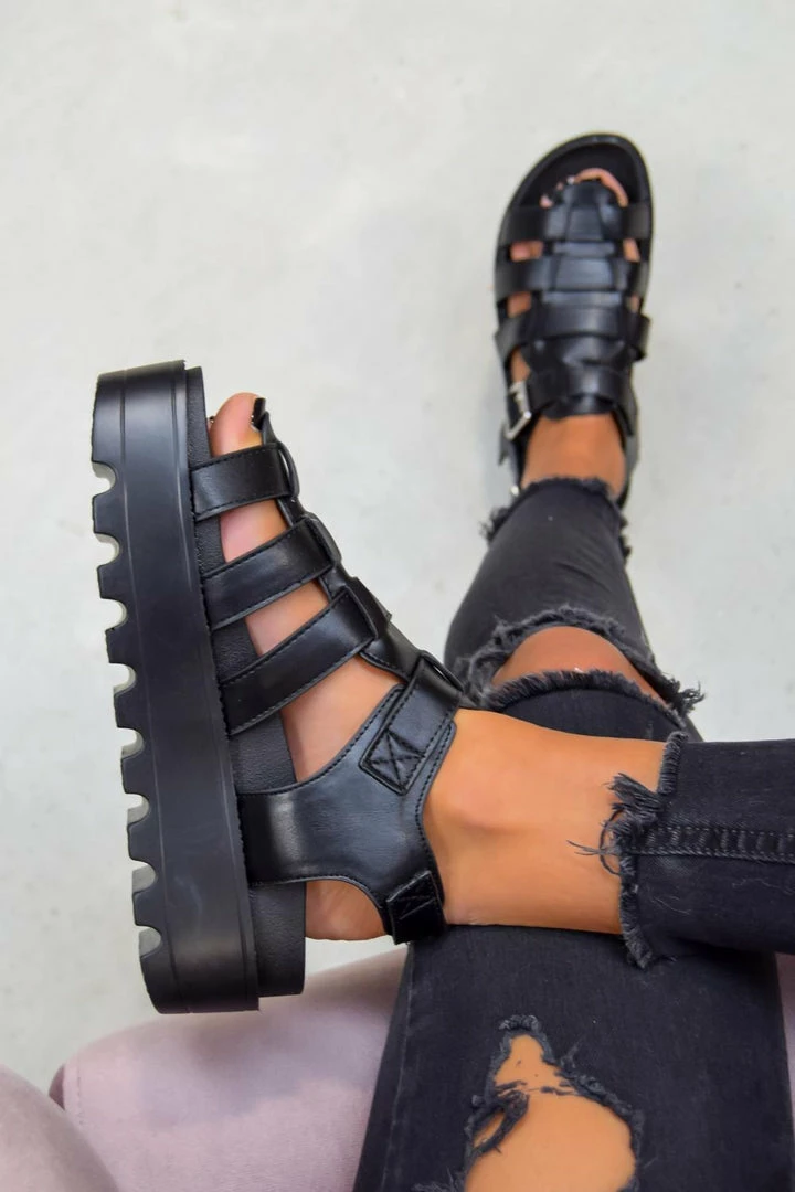 Now these hit different! Our ‘Mia’ sandals can take you from day to night. Featuring a closed caged gladiator style front, a chunky cleated sole and ankle buckle fastening. Pair with some black ripped skinnies to complete the look
