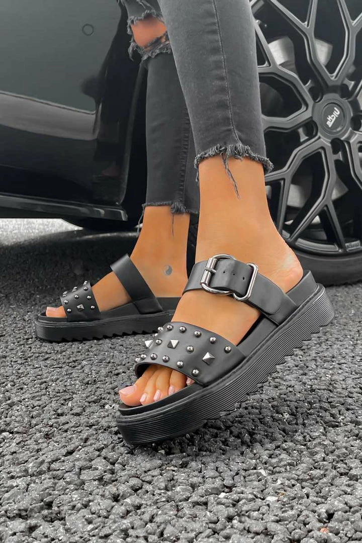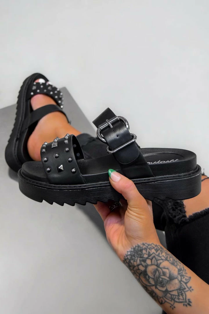 Our ‘Hold on’ sandals feature a chunky cleated sole, studded strap detail and chunky buckle fastening. These will be your go-to sandals this year!