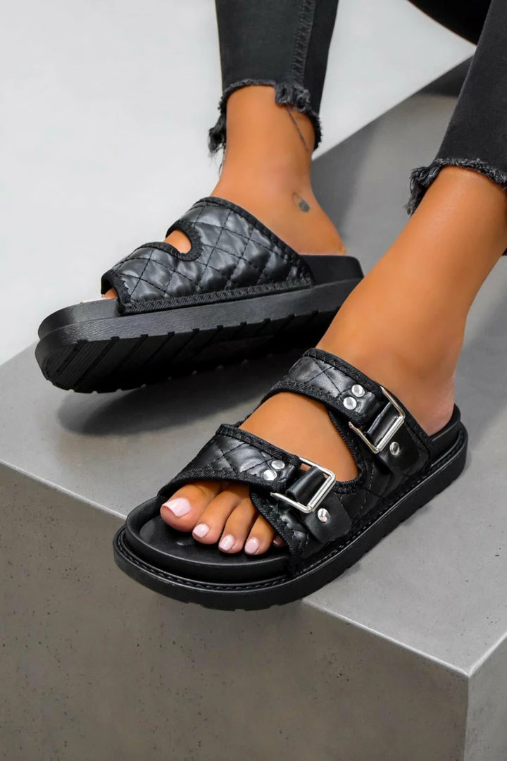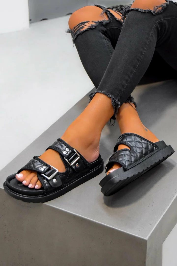 Our Kady sandals feature a chunky sole design, with a quilted finish and buckle straps.