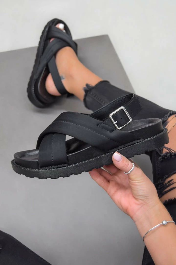 These are a must have for this season, our Nola sandals feature cushioned cross over front straps, chunky sole and buckle fastening. Pair with some black ripped skinnies to complete this look.