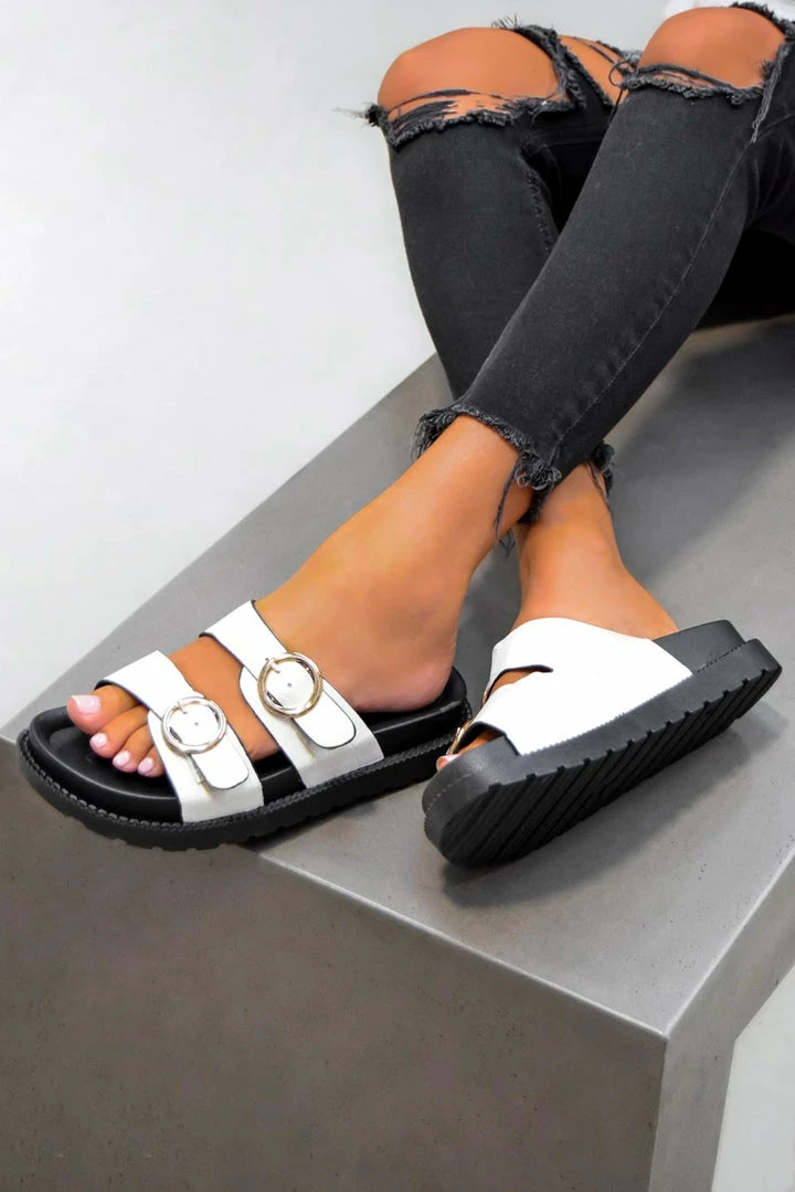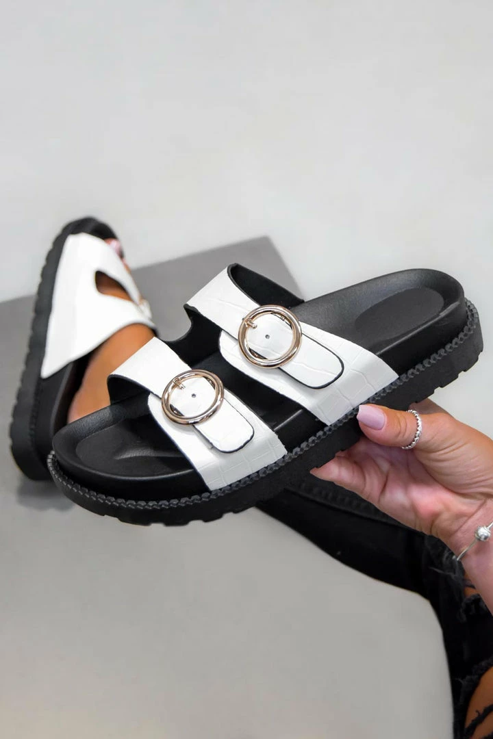 We’re loving these new arrivals, our ‘Over It’ sandals feature a chunky sole design, with thick front straps with gold buckle detail.