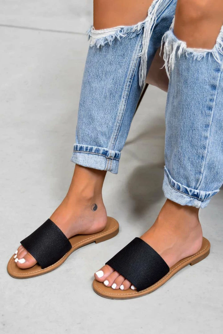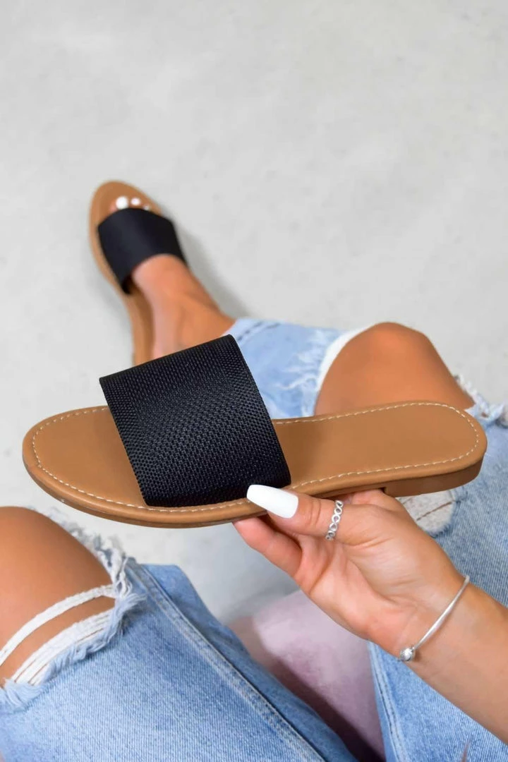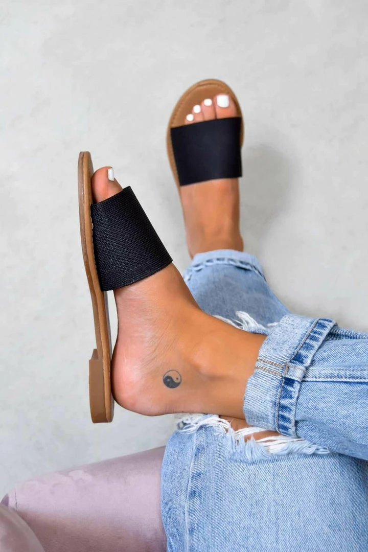 LIV SHOES ROCHELLE Textured Strap Sliders – Black
