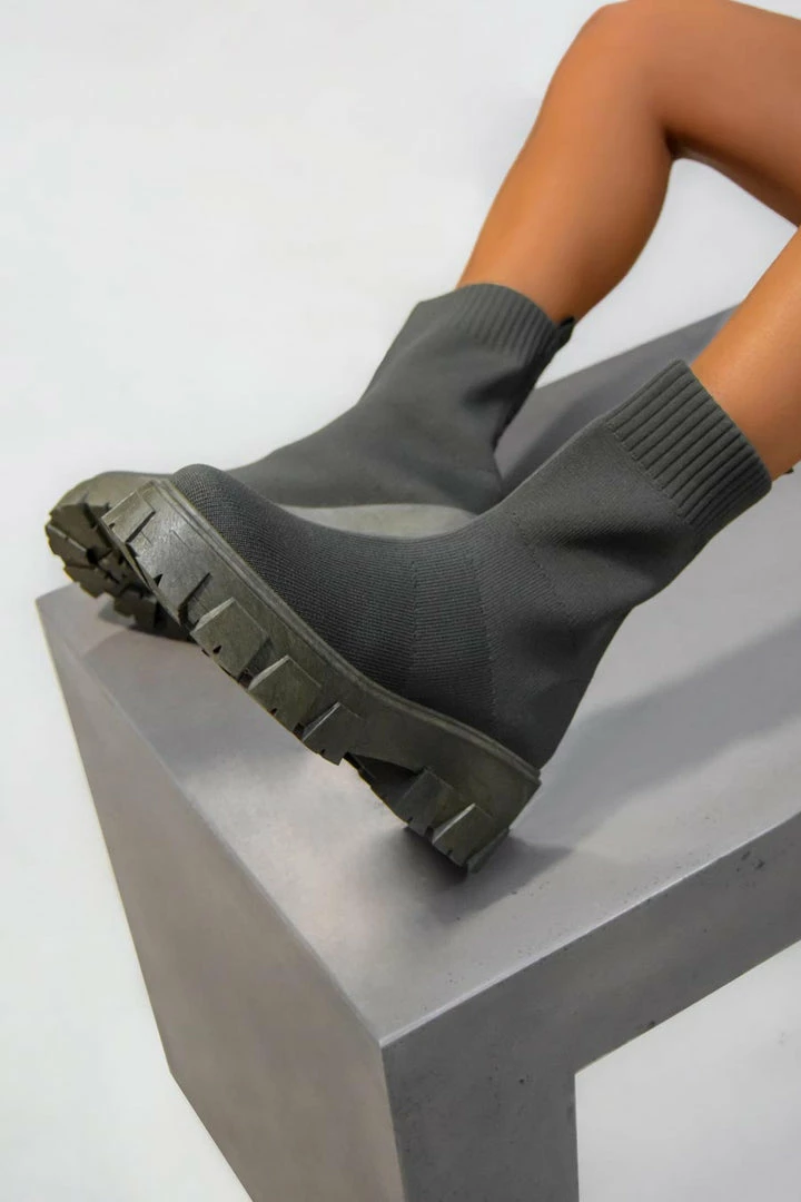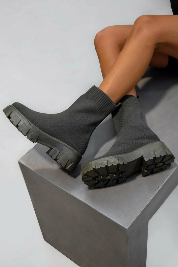 Boss it this season these new arrivals! Featuring a sock-fit upper, chunky platform sole and ribbed cream material.Â