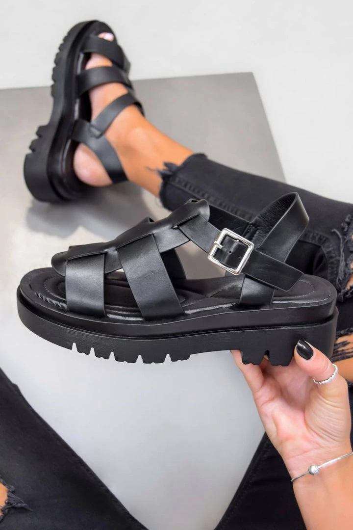Our Trini sandals feature a multiple strap front, buckle fastening and chunky cleated sole. Pair with your fav pair of skinnies or your fav festival outfit to complete the look.