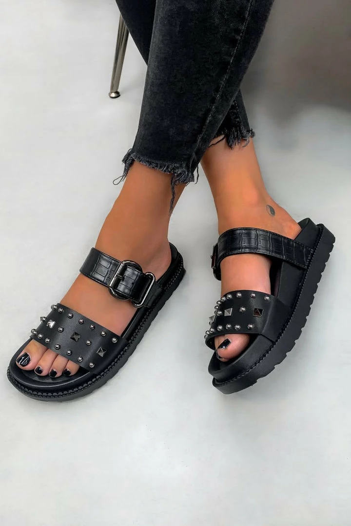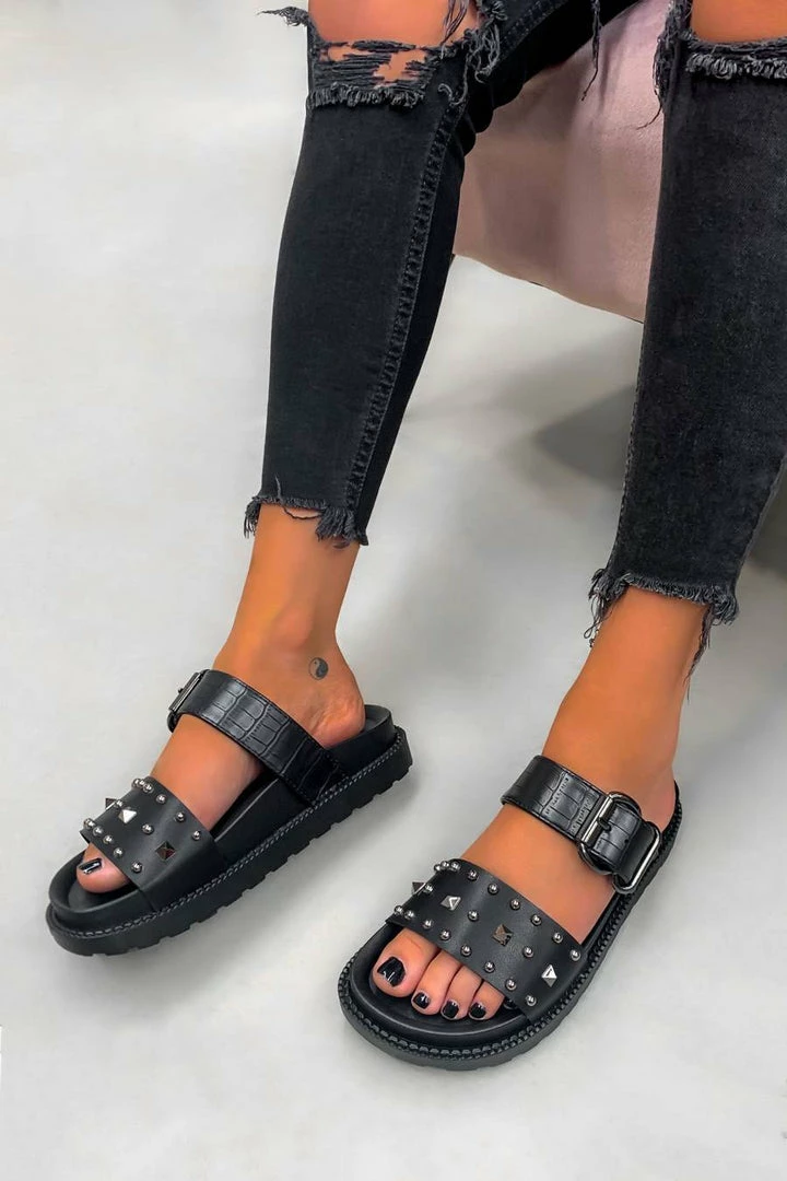 We’re loving these new baddies, our ‘Told You’ sandals feature a chunky cleated sole design, with thick front straps on with this seasons must have croc print, studded detailing and a buckle strap, they’ll be your go to sandal this year!