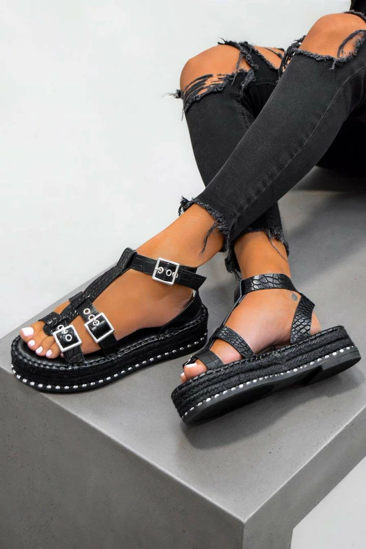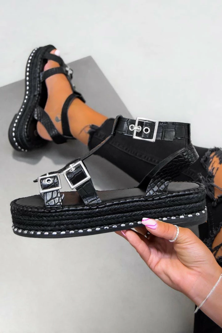 LIVE IT Chunky Espadrille Sandals – Black Croc