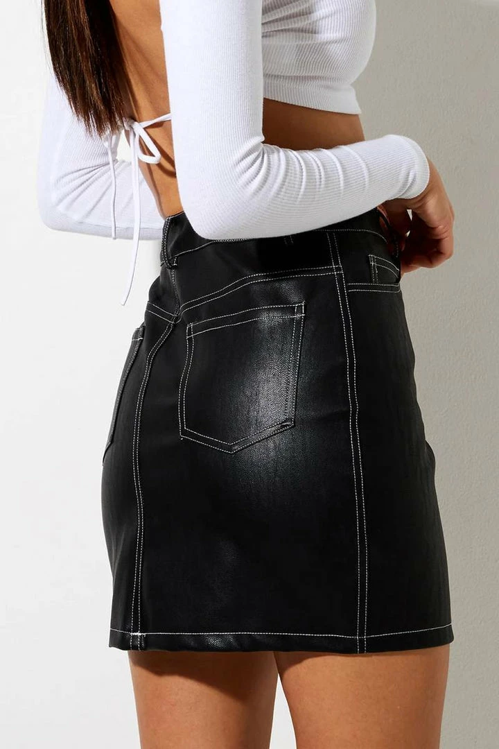 Update your skirt collection with this new essential arrival from Motel Rocks. The Broomy skirt features a high waisted mini fit, button fastening and PU faux leather material. Pair with white crop tee to complete this look.