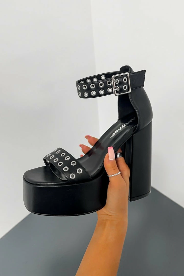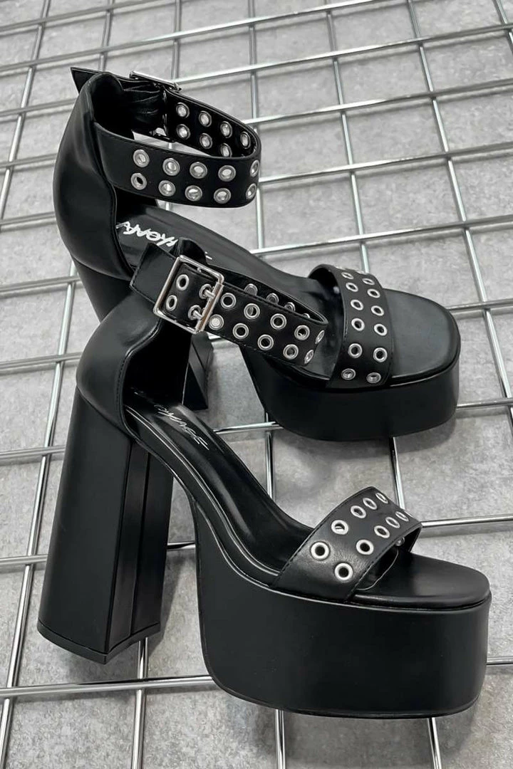 NDS CAUTION Platform Eyelet Heels – Black SHOES