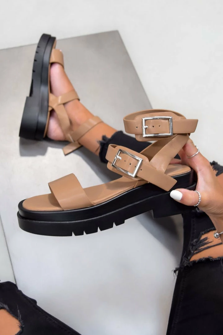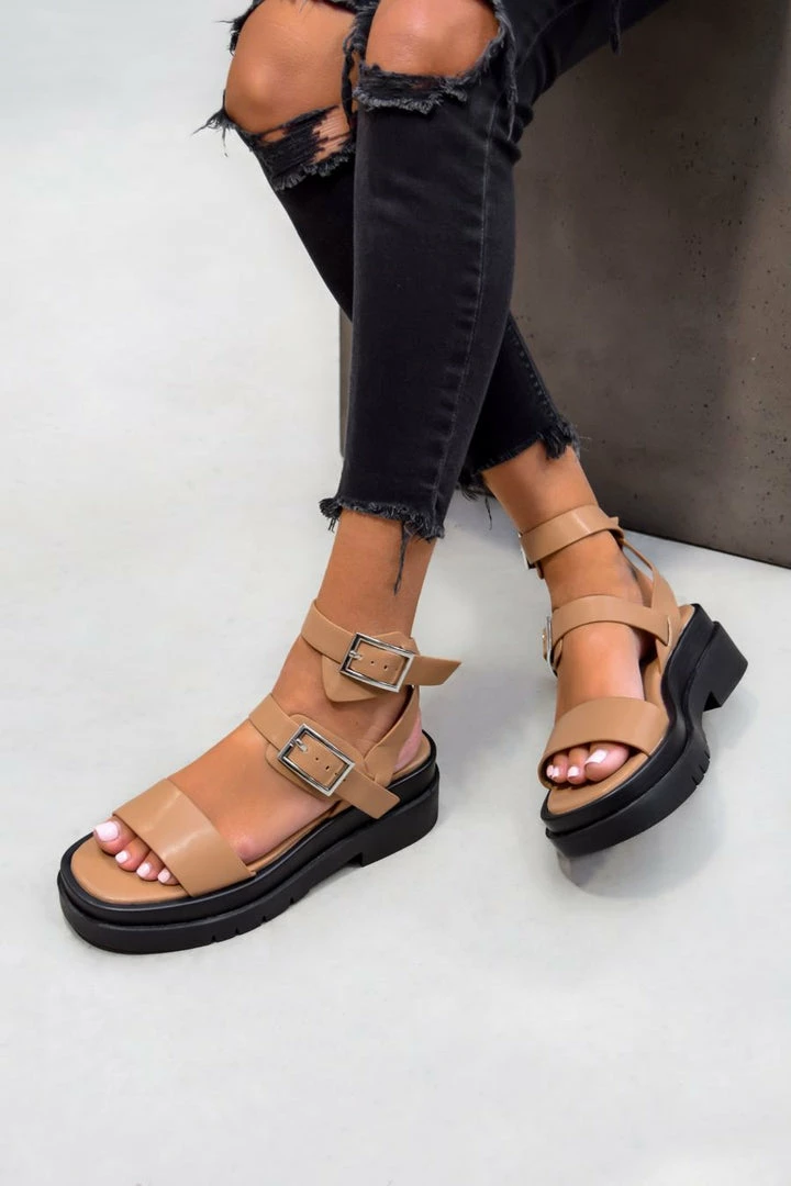 NDS FAITH Chunky Buckle Sandals – Mocha PU SHOES