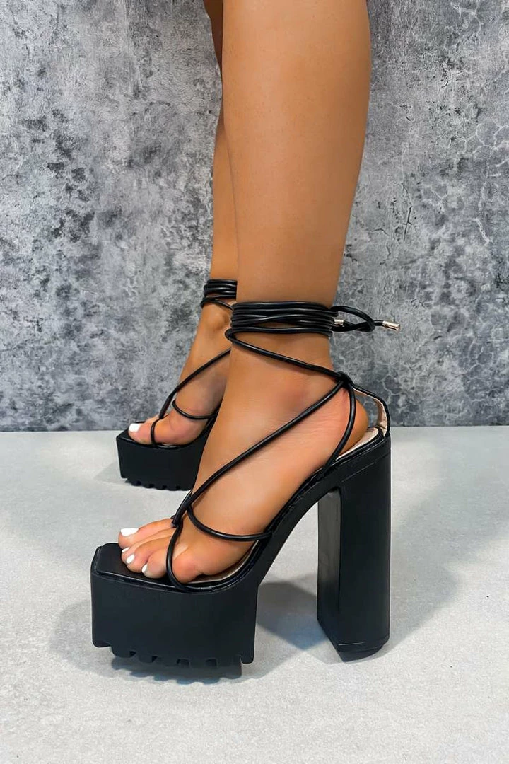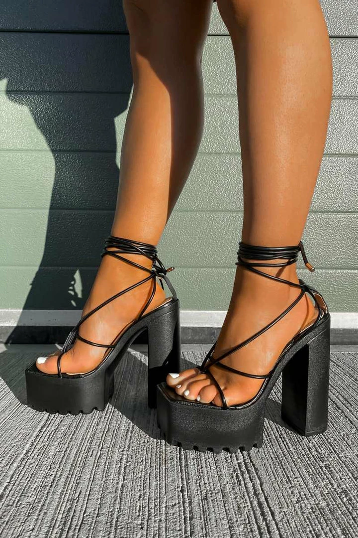 Heels as high as your standards! Our Jade heels feature a platform sole with super chunky block heel, toe post design and lace-up fastening.Â