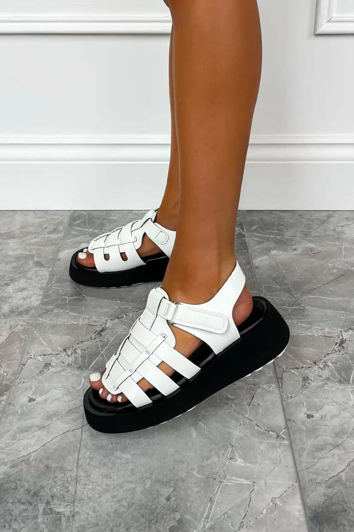 Our KIKI sandals feature a chunky platform sole, gladiator-style front straps and velcro buckle fastening.