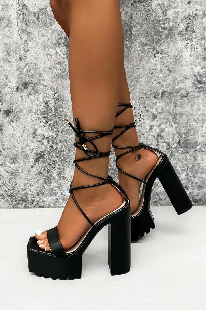 Heels as high as your standards! Our Marcelle heels feature a platform sole with super chunky block heel and lace-up fastening.Â