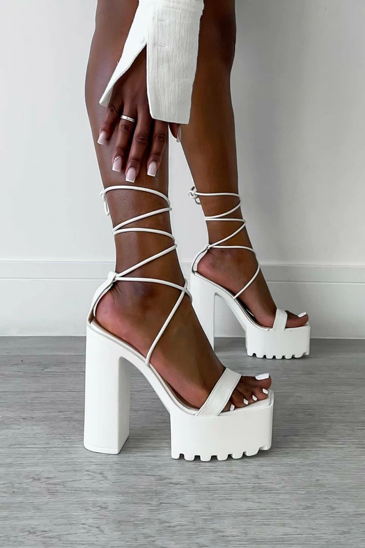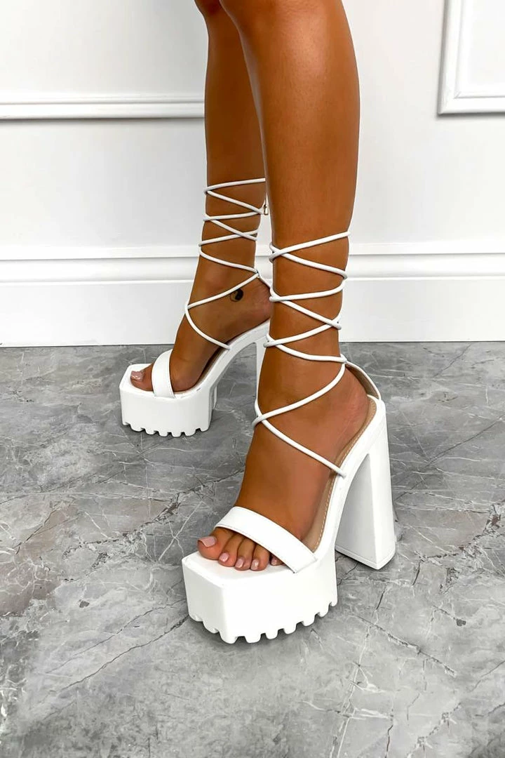 Heels as high as your standards! Our Marcelle heels feature a platform sole with super chunky block heel and lace-up fastening.