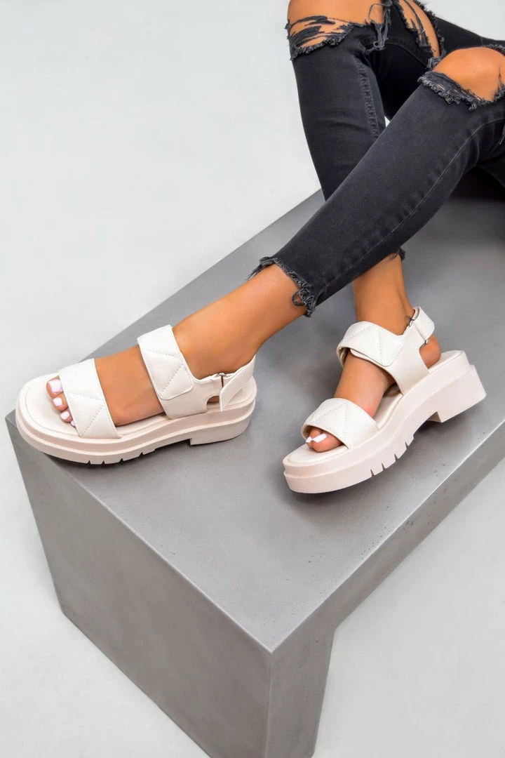 Step into Summer in our Nia sandals, featuring a quilted upper design with a velcro fastening and chunky sole. Pair with your fave pair of skinnies or a festival outfit.