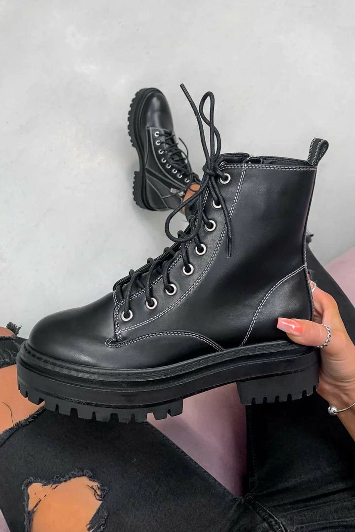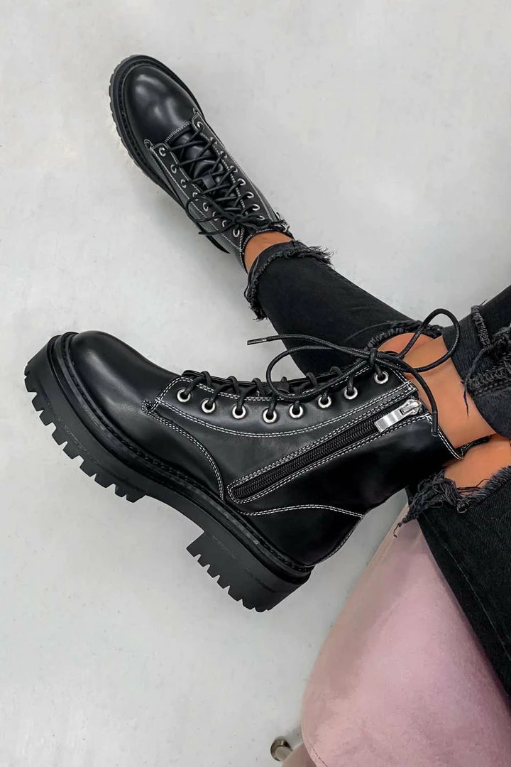 These new arrivals are NEXT LEVEL! Featuring a lace up front, chunky platform sole, contrast stitch detailing and matte PU finish! Pair with some black ripped skinnies to complete this look, these are sure to take you from summer festivals right through to winter!