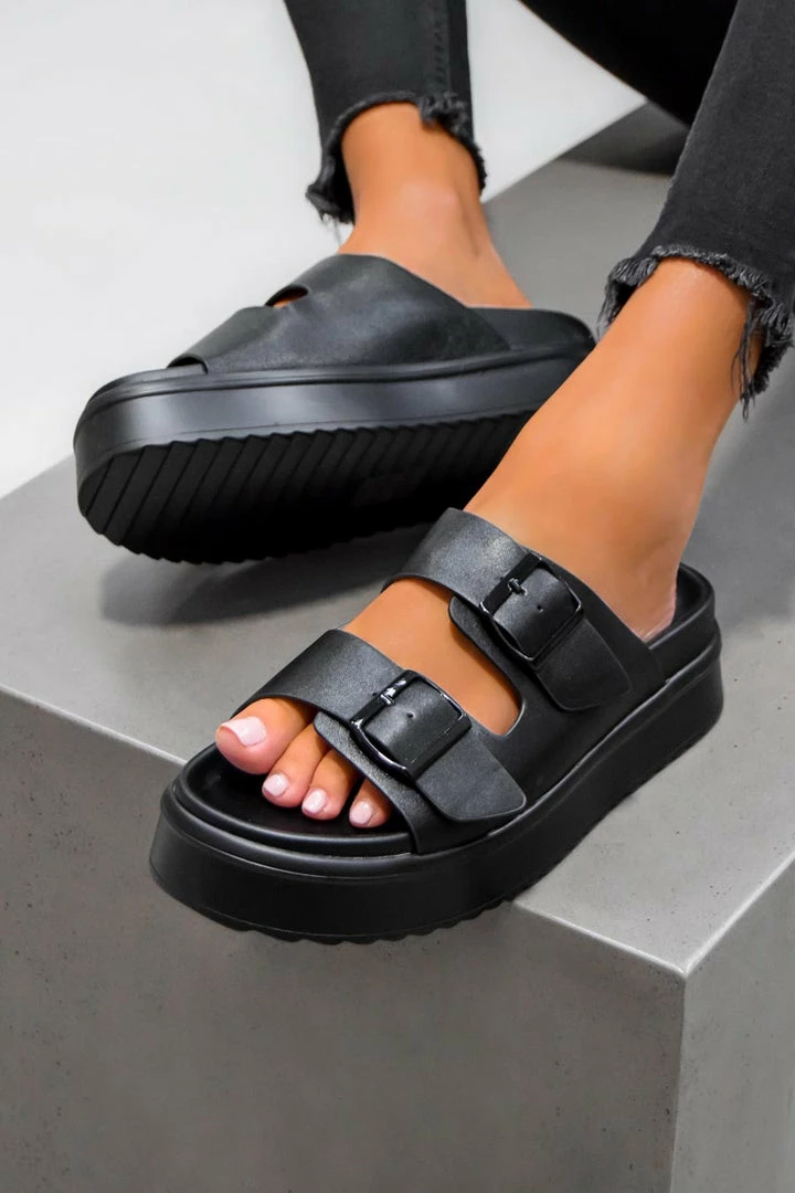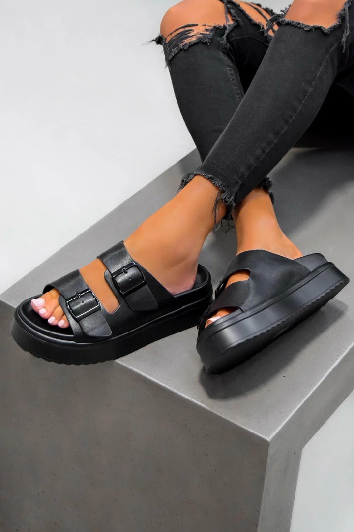 Our Remmy sandals featuring a super chunky sole,  double front straps and buckle detail.
