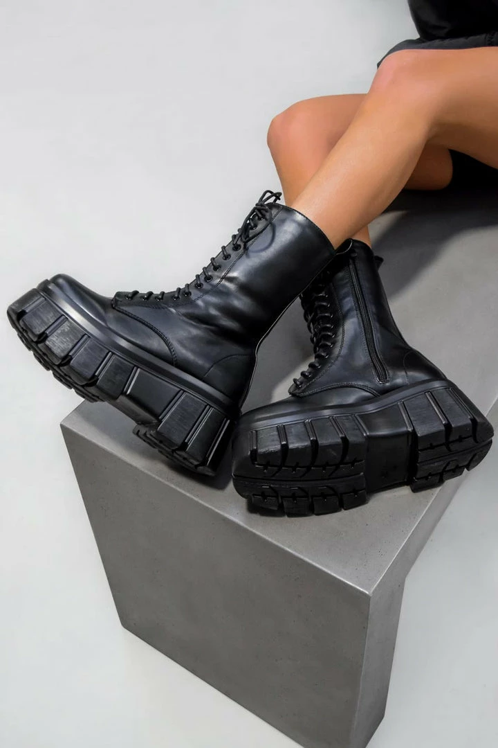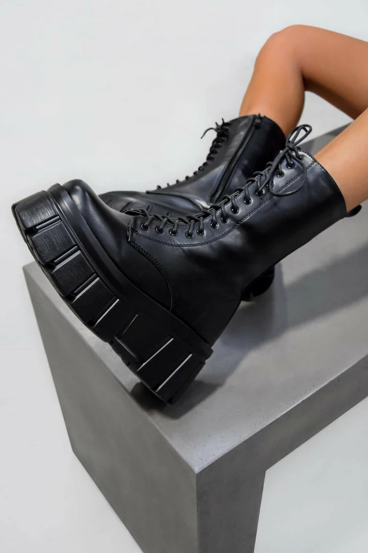 Level up your look this season with these super chunky new arrivals, we can’t get enough! These baddies will rock your outfits, featuring a super chunky platform sole, lace up front, mid length design and inside leg zip.Â