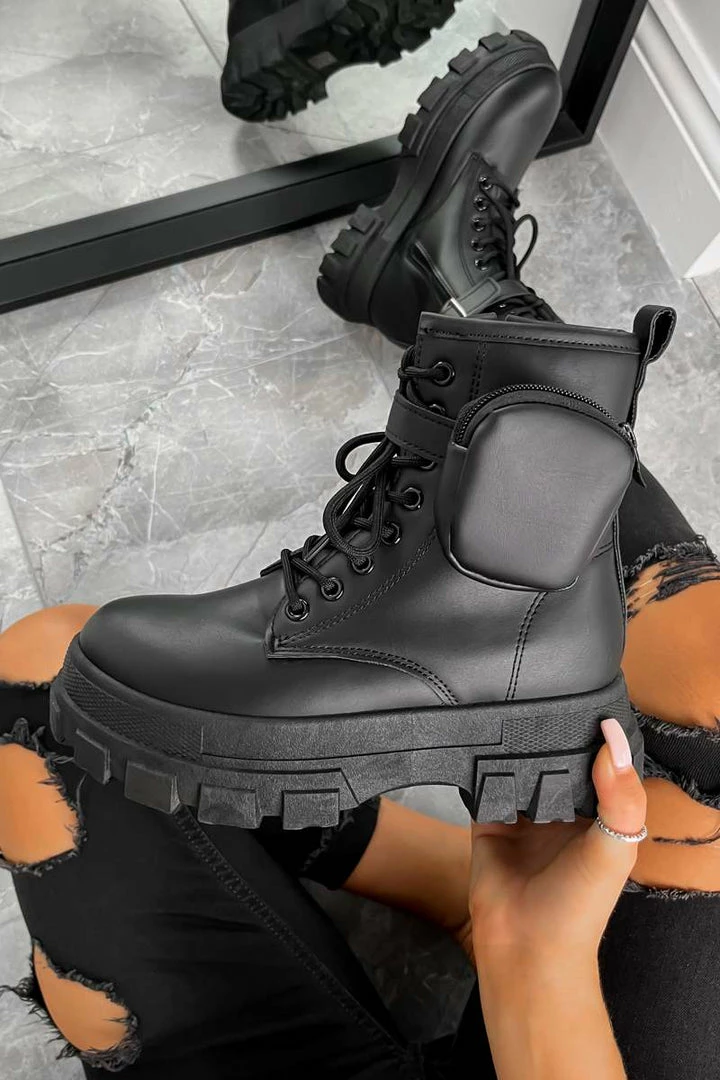 We’re obsessed with these new arrivals! Our Command boots feature a lace up front, chunky cut-out platform sole and detachable side pocket detail.Â