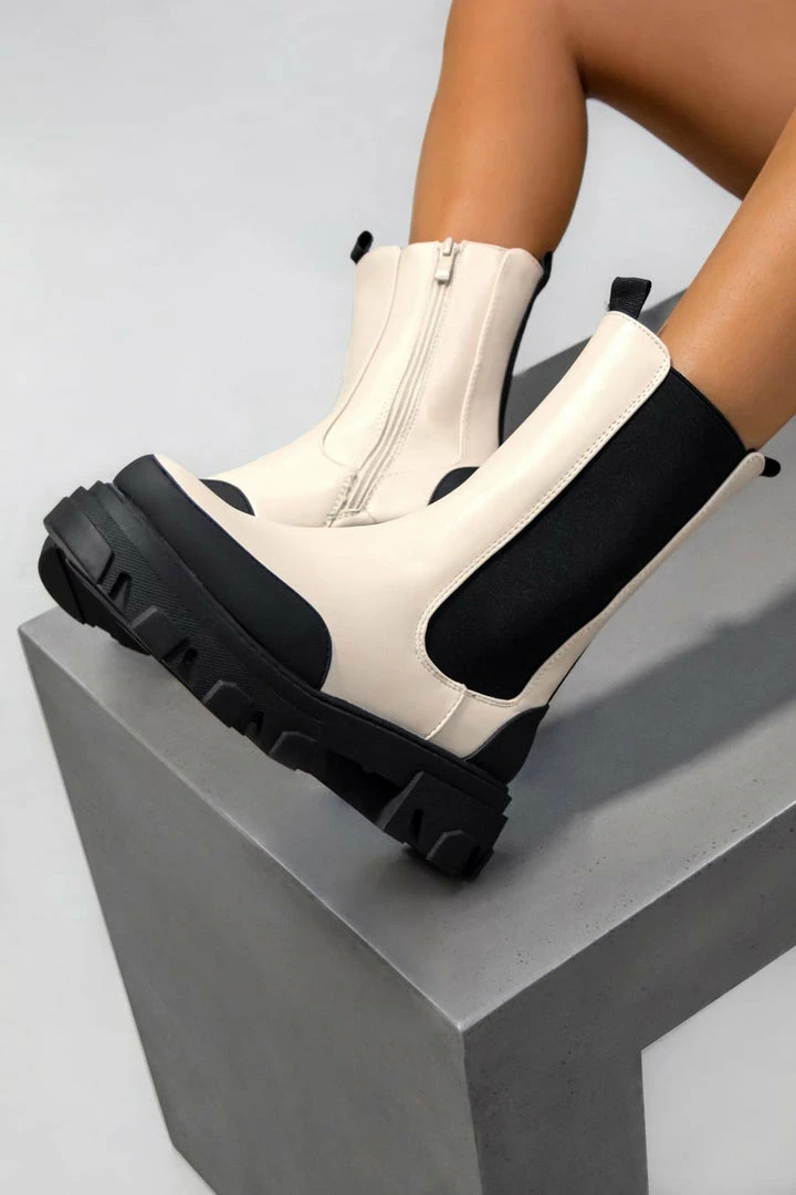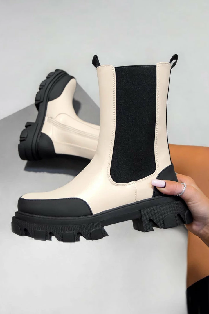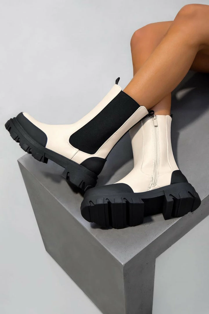 Our Etta boots feature a chelsea boot design, elasticated side panel, inside zip and a cleated sole.Â