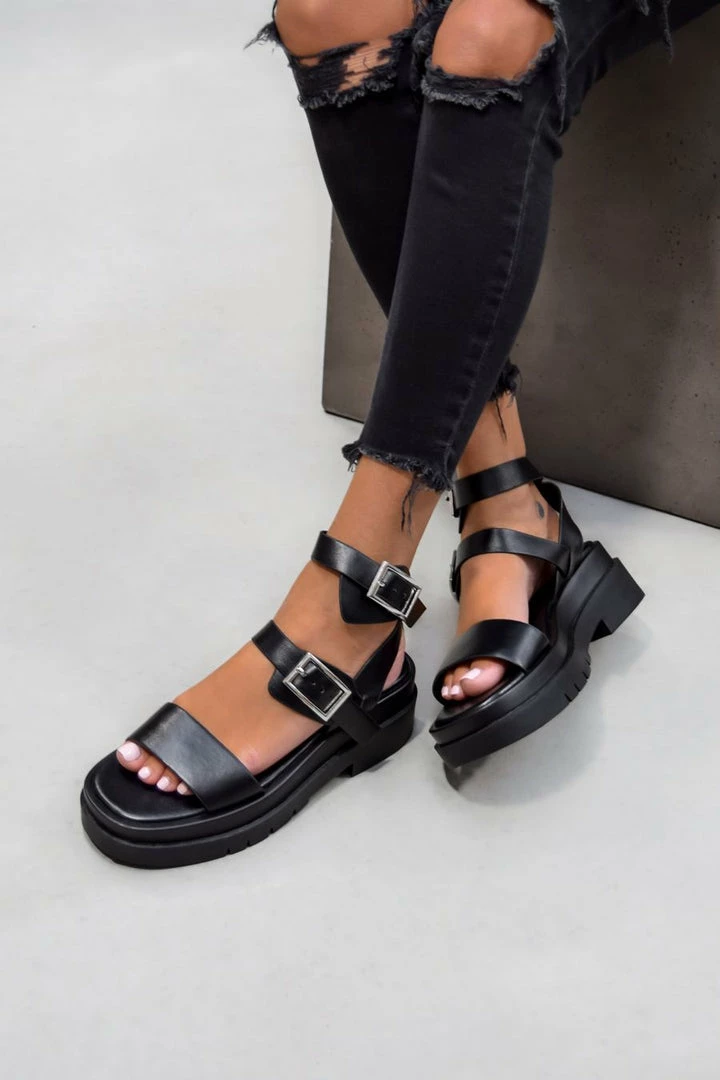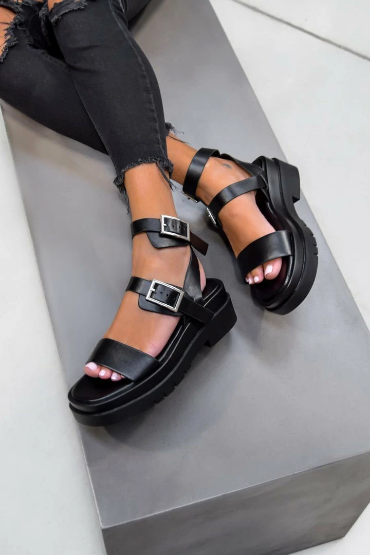NDS SHOES FAITH Chunky Buckle Sandals – Black PU