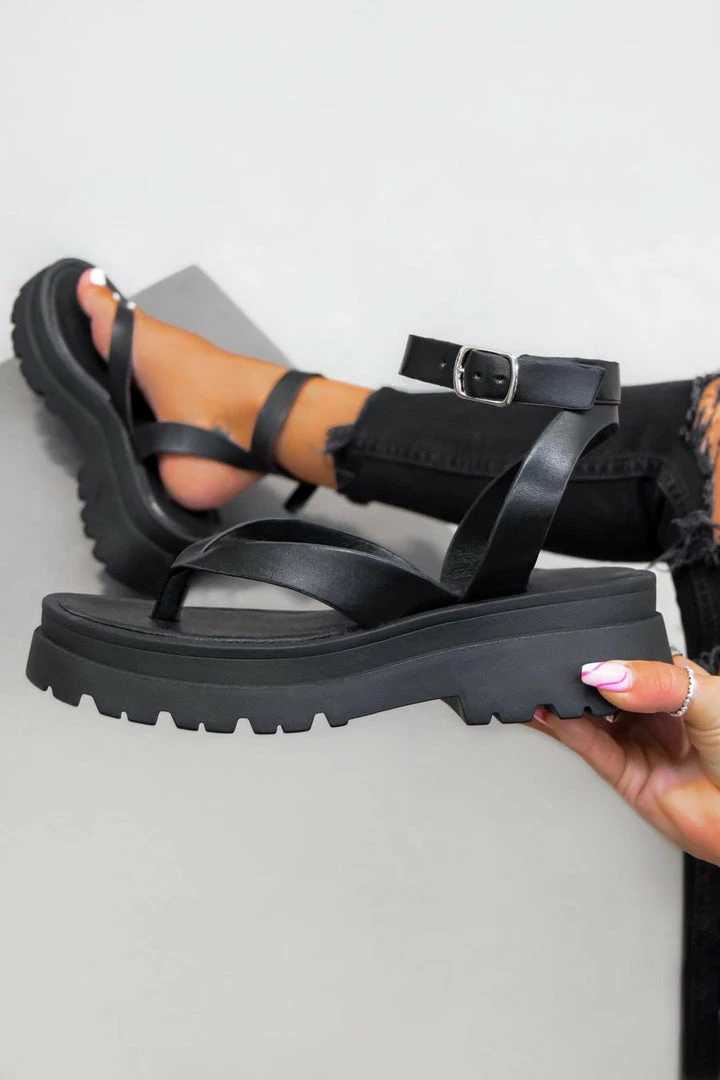 Our Leona sandals feature a chunky sole, toe post design, wrap around ankle design with a buckle fastening.Â