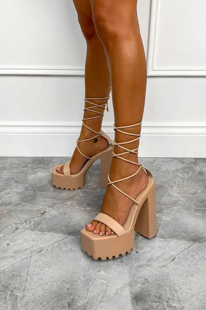 Heels as high as your standards! Our Marcelle heels feature a platform sole with super chunky block heel and lace-up fastening.