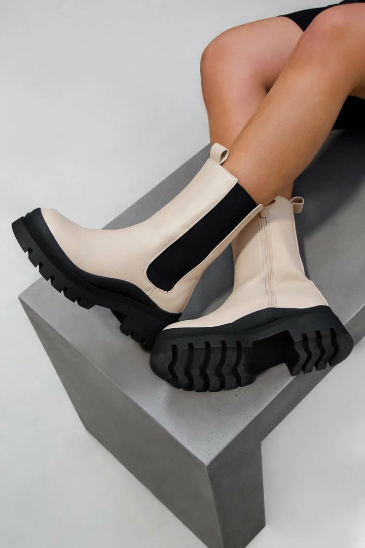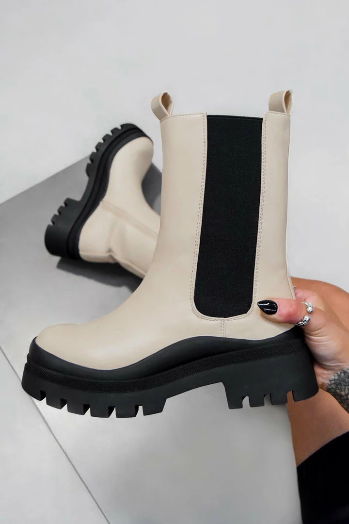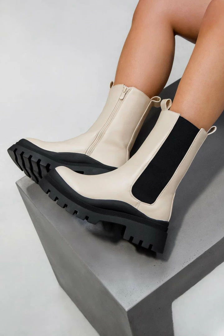 Our Sophia boots feature a chelsea boot design, elasticated side panel, with an inside zip and a cleated chunky sole.