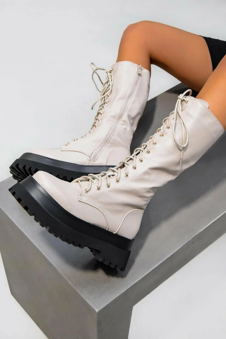 Our Uproar boots feature a lace up front with an inside zip, super chunky sole with a PU finish.