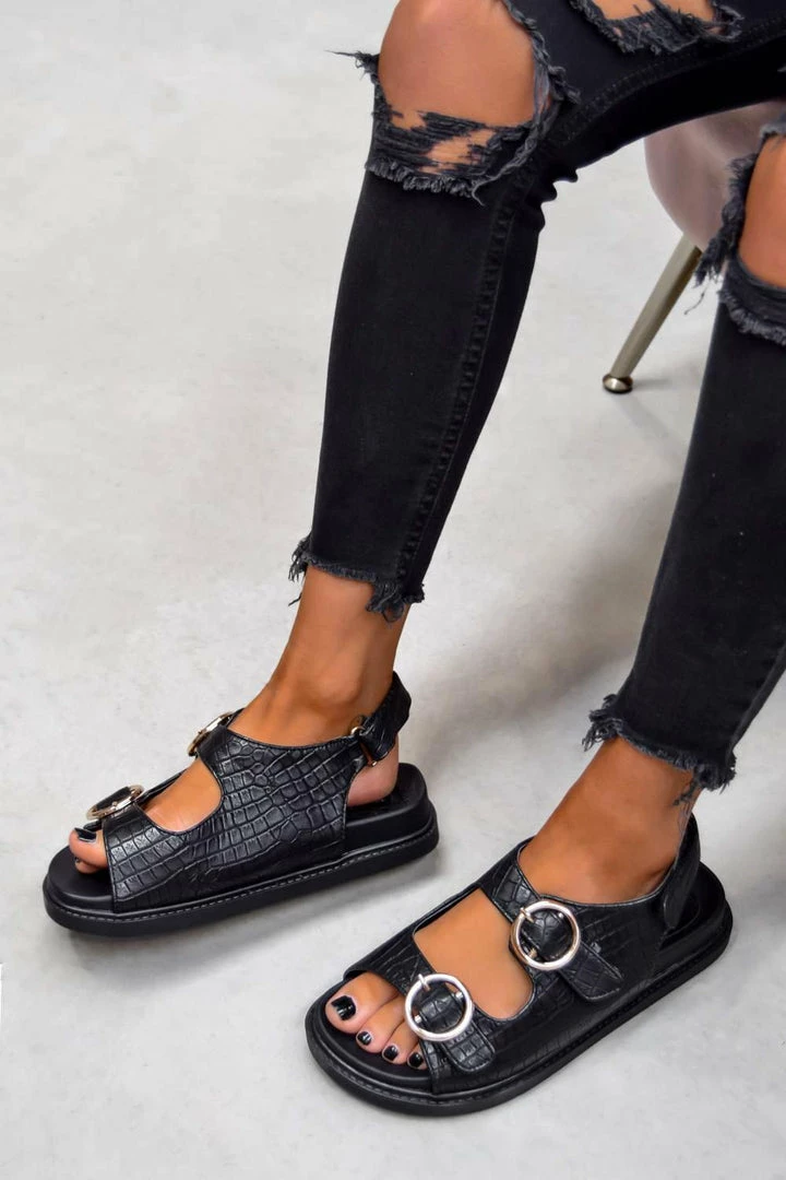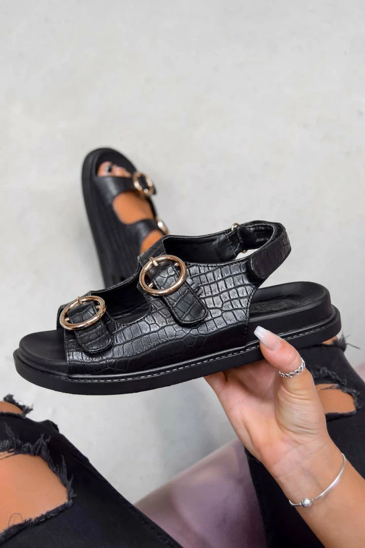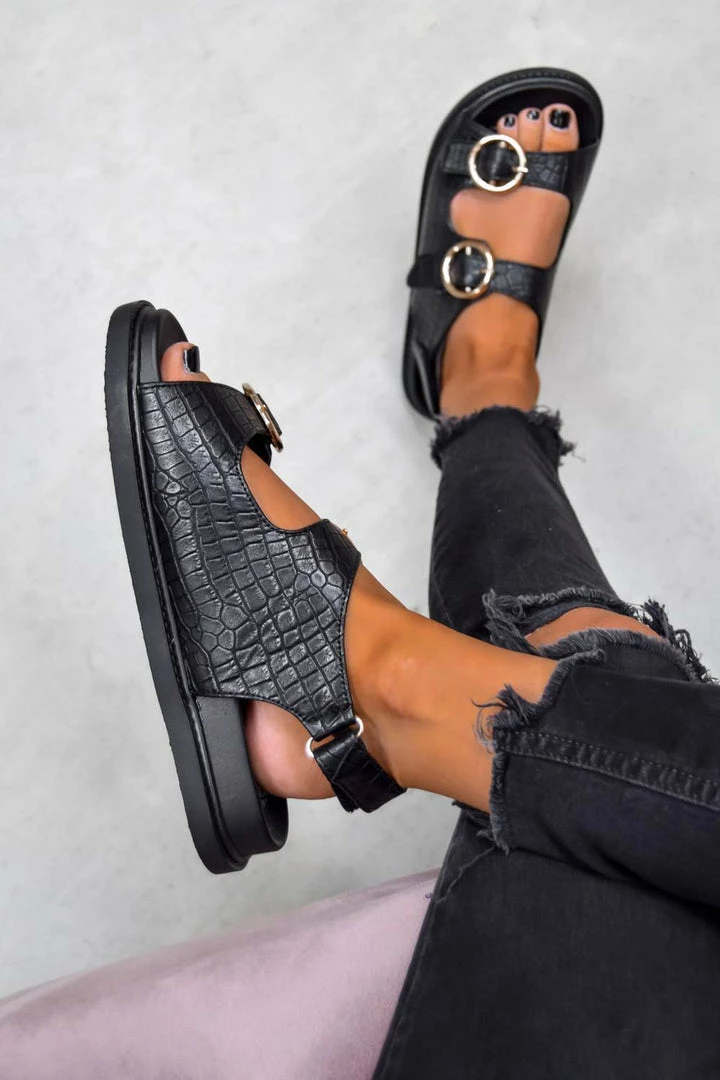 We’re loving these new baddies, our ‘Vacate’ sandals are a definite Summer essential featuring a chunky sole design, with gold ring buckle detailing and our must have croc print material, they’ll be your go to sandal this year!
