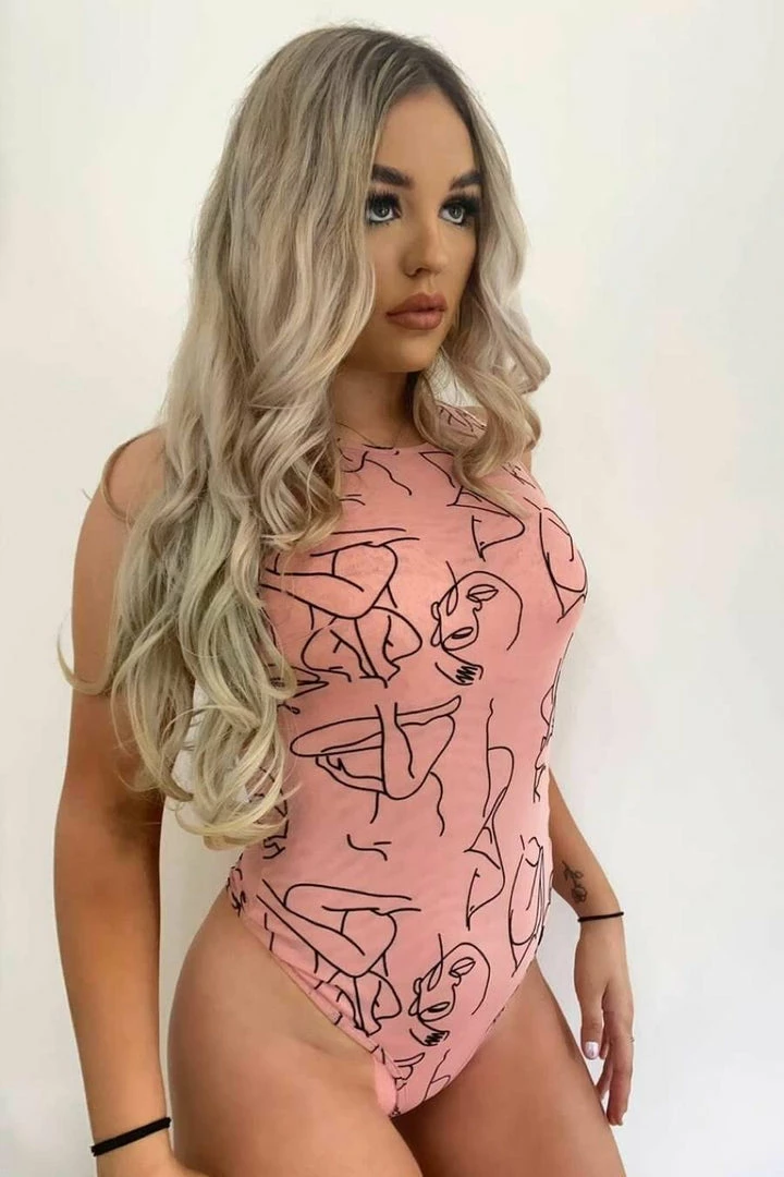 Update your wardrobe this season with this new arrival, featuring a high neck with a single pearlescent button neck-closure, mesh fabric in a bright pink / orange swirl print