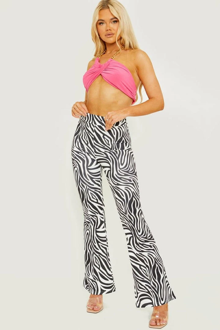 Step out fierce this season in these new arrivals, featuring a zebra print fabric and flared bottom design. Pair with chunky boots or heels for a killer look!